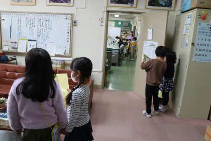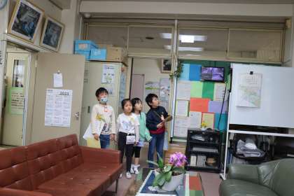 校長室の次は職員室です。今日は特別に、少し中を歩かせてもらいました。