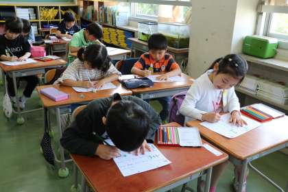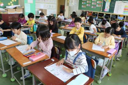 こちらも1年生の様子です。今日のひらがなは「ま」です。