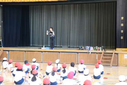 3年生の体育の授業の様子です。運動会の表現運動の練習を行っていました。先生から踊りのポイントを集中して聞いて練習していました。始まったばかりの練習ですが、今から本番が楽しみになるような練習風景でした。限られた時間を有効に使って、素晴らしい演技にしてほしいです。