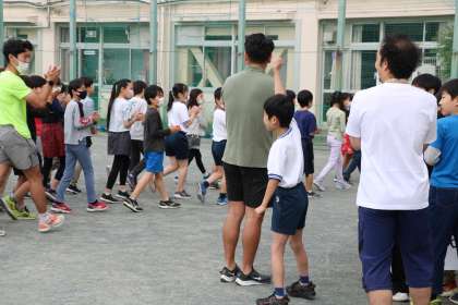 集会が終わり振り返りをしている集会委員の横を通る5・6年生が、『楽しい集会をありがとう』という気持ちを、拍手で表しています。先生から「さあ、拍手をしましょう」と言われるわけでなく自然と拍手が起こる、この優しさが、砧っ子のよいところです。