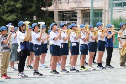 外での練習に、6年生は真剣です。