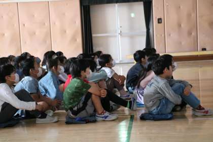 写真は5年生の様子です。SNSの使い方、ネットトラブルについて話を聞き、考えました。学習のために使用するタブレット、ということは学校でも実際に使いながら指導しているところですが、タブレットだけでなく家庭でのネット機器についてもモラルをもって使ってほしいです。子どもたち自身が、被害者にも加害者にもならないように機会あるごとに話していかなければならない内容であると思いました。