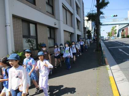 4年生が、美術鑑賞教室に行きました。会場の世田谷美術館まで徒歩で行きました。暑い中でしたが、途中で水飲み休憩やトイレ休憩をとりながら行きました。最初に美術館の人から、簡単な説明を受けて、ボランティアスタッフの案内で、鑑賞しました。