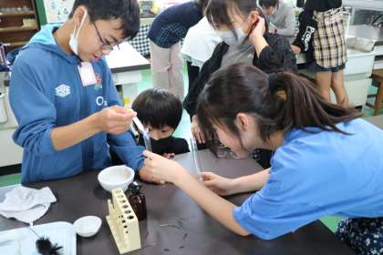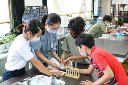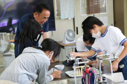 6年生の理科の授業の様子です。今日は唾液のはたらきについての実験をしていました。すりつぶしたご飯とお湯を混ぜた上澄み液に、唾液を混ぜた試験管と水を混ぜた試験菅にそれぞれヨウ素液を入れて変化を観察していました。どの班も役割分担して協力して実験を行っていました。