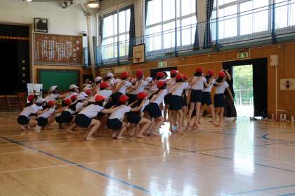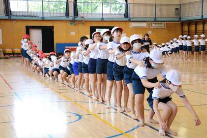 5年生も運動会練習を行っていました。今日は体育館で表現運動の合間に入れる集団行動の練習を行っていました。波をイメージする動きを取り入れてダイナミックに表現できていました。みんなで声を掛け合い、それぞれの役割を意識しながら取り組む様子に感心しました。