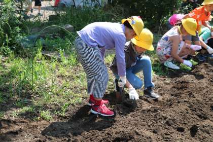 「雑草や石がないように、土をフカフカにしようね。」