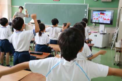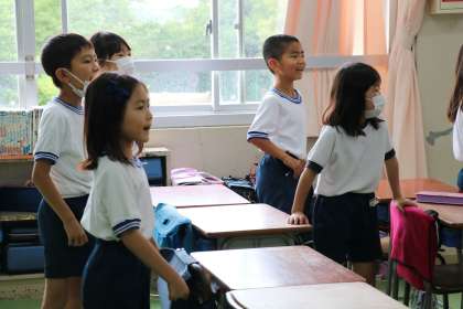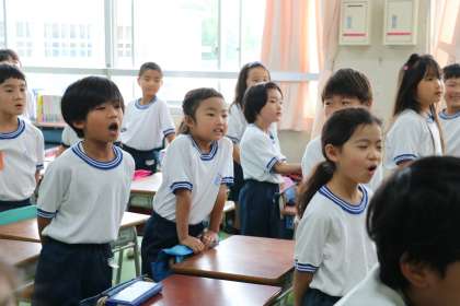 2年生音楽の様子です。「ゴーゴーゴー」の歌を赤白に分かれて歌っています。子どもたちはこの歌がとても好きです。どんな歌かぜひご家庭で聞いてください。