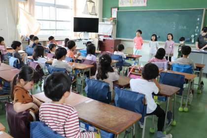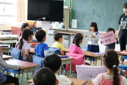 隣のクラスは先生のひと工夫で、文字で参加の日直さんです。