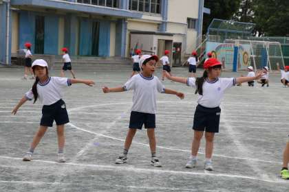 2年生表現の練習の様子です。動きを大きく、笑顔いっぱい一生懸命取り組んでいます。