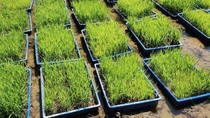 今日は5年生と幼稚園・保育園合同で田植えです。