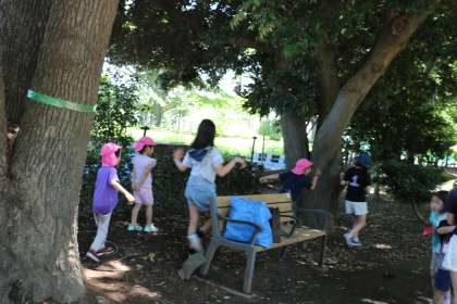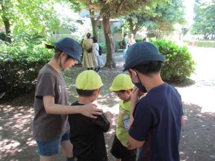 田植えが終わったら、泥だらけの足を洗ってあげます。きれいになったら、木陰で休んでおしゃべりしたり遊んだり、楽しいひと時を過ごしました。