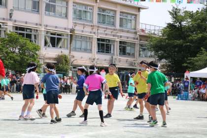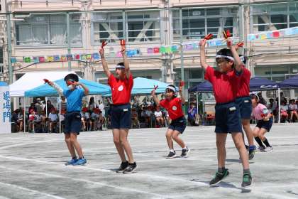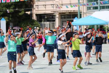 3年生の学年スローガンは「あいさいチャレンジ」略して「あいチャレ」です。自分たちで踊りを考えて、仲間と教えあい、助けあい、これまで練習してきました。ぴたりと合った鳴子の音で、さらに踊りを盛り上げます。