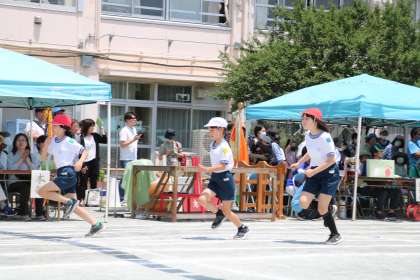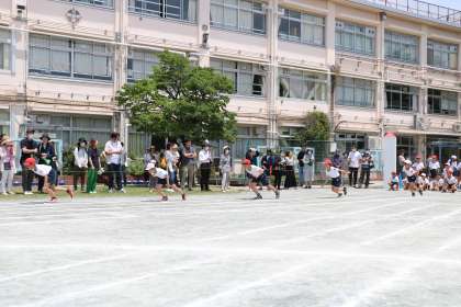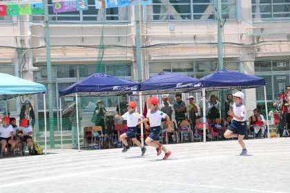 高学年になり走る距離が90mになりました。最後まで全力で走り抜けます。