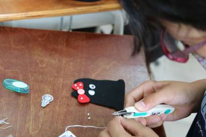6年生家庭科の様子です。先々週よりだいぶ作品が進みました。細かいビーズやスパンコールがどこかに落ちちゃったとか、犬の鼻が上手につけられないとか・・・四苦八苦しながらも楽しそうです。自分の作品に愛着がわいてくるようです。