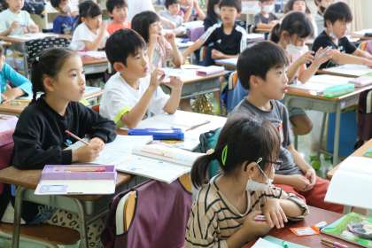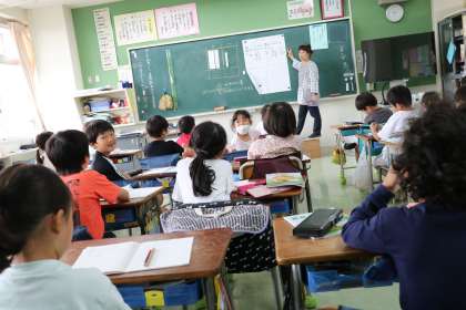 友だちの発表を聞くときは、発表する友達の方に体を向けて聞き、先生と一緒に計算の仕方を考えるときは、一生懸命黒板を見ながら考え、解き進めています。子どもたちの真剣な顔はすてきです。