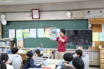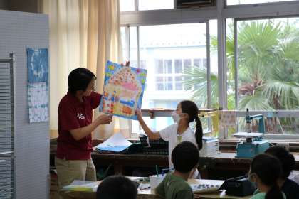 3年生の図工の授業の様子です。完成した「ペタンペタンハウス」をみんなで鑑賞していました。鑑賞して良かったところを発表し合っていました。細かい工夫についてまで、気づいていて感心しました。