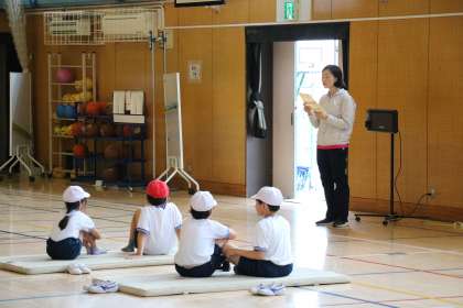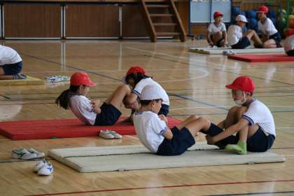 4年生の体育の授業の様子です。6月15日に行われる予定のスポーツテストの練習をしていました。反復横跳びや上体起こしの細かいやり方の説明を先生から聞いて、実際にやっていました。4年生の全国平均の回数を聞いて、平均以上を目指してがんばっていました。