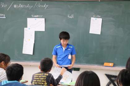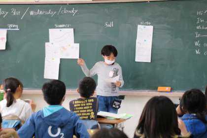 6年生の外国語の授業の様子です。今日は、日本の季節ごとの行事について調べたことを英語で発表していました。夏祭りや餅つきなど日本ならでは行事を詳しく説明できていました。発表後にはみんなから拍手が起こっていました。