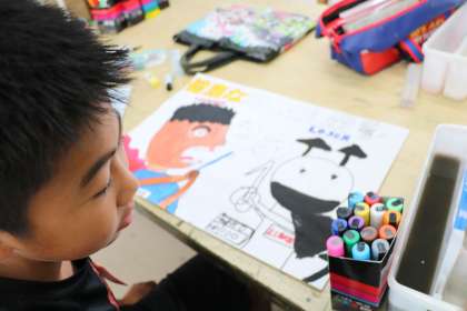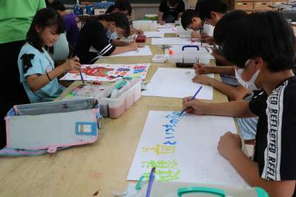 6年生図工・歯のポスターを描いている様子です。じっくり自分の作品と向き合いながら、時々友達に相談したり、友だちの作品のよいところに感心したりとても温かい雰囲気で取り組んでいます。