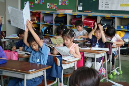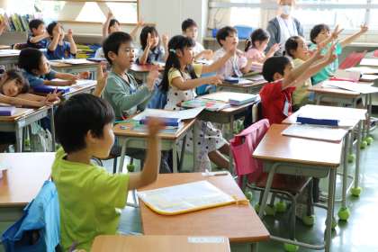 1年生算数の様子です。いくつといくつの学習をしています。5になる「ごまだんご」から始まり今日は7になる「バナナ」です。バナナのように両手をパチンと合わせていくつといくつを言う姿がかわいいです。