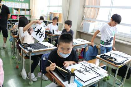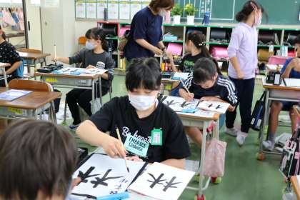 はらいもある難しい字です。真剣に字と向かい合って書いていました。
