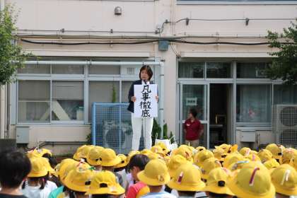 月曜朝会です。今日は、運動会で素晴らしい力を発揮したことから、「凡事徹底」の話をしました。あたりまえのことをあたりまえにやる。誰にも真似できないほど徹底的に当たり前のことをやることが、自分の力をさらに発揮したり、新しいことに挑戦する力となります。