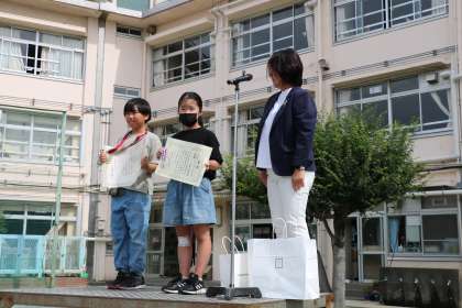 学校の外でがんばった砧っ子の報告もしました。