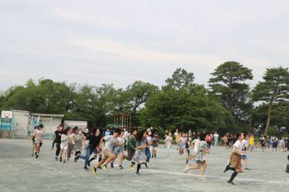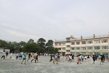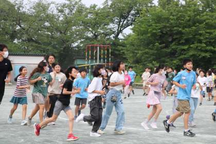 朝遊びの後、今日は4・5・6年生の朝ランです。久しぶりに3学年一緒にランランランです。