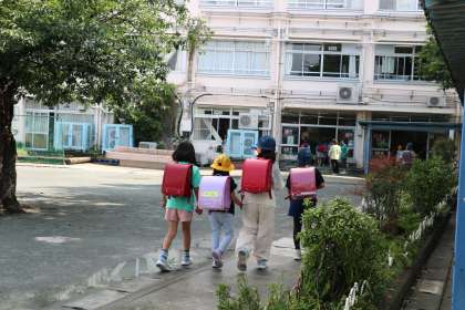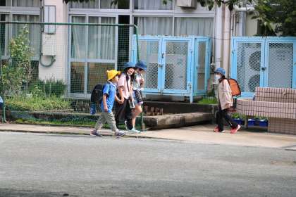 朝、門で子どもたちを迎えていると近所の上級生に手をつないできてもらう子や、家の方、お姉ちゃんやおにいちゃんに見守られながら登校する子がいます。ありがたいです。