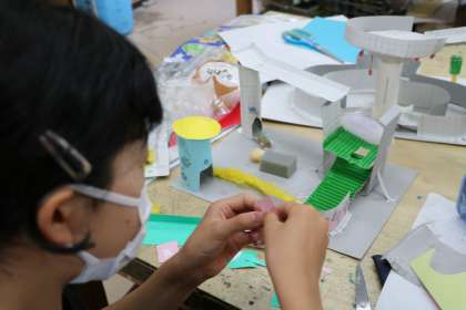 何度もビー玉を転がしては試し、改良や工夫を考えています。