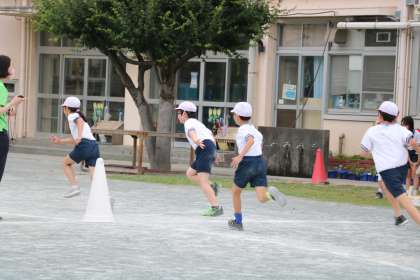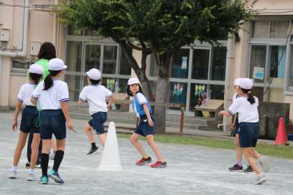4年生体育でも同様です。タイミングよく走りだしたり、バトンパスをスムーズにしたり体育としてのねらいのある授業ではありますが、それ以外に友達を全力で応援する姿、健闘をたたえる姿から、担任の先生が子どもたちのつながりを大切にしていることがちゃんと育っている様子がうかがえます。