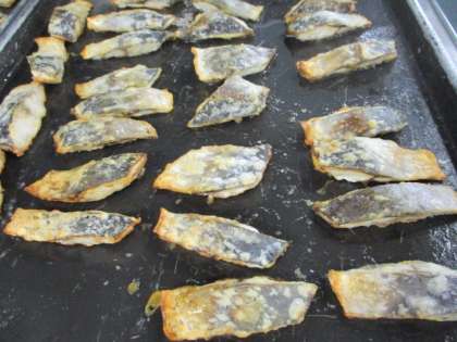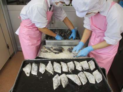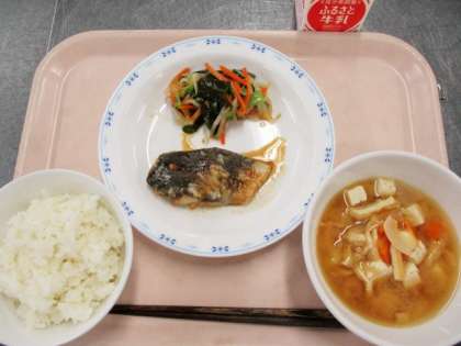 鰺は夏が旬の魚です。鰺で梅肉焼きを作りました。生姜の絞り汁と酒で下味をつけた鰺に片栗粉と油をまぶしつけて、オーブンで焼いています。その上に、練り梅、みりん、しょうゆ、砂糖、鰹節でとっただし汁を合わせたたれをかけました。ぱりっと焼けた鰺に梅の香りのたれがしみこんで、ご飯に合うおかずになります。こどもたちもよく食べていました。