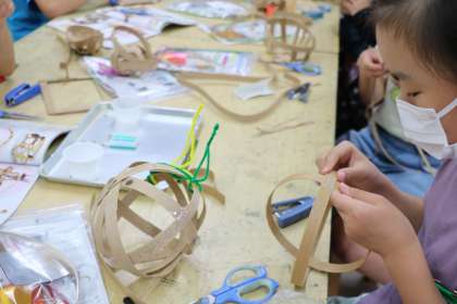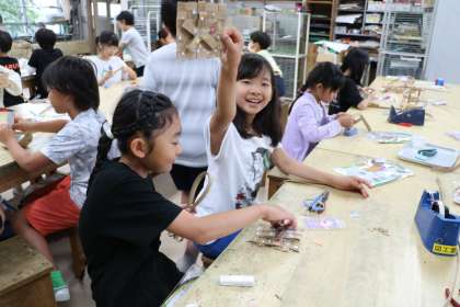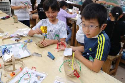 4年生図工「つないで、組んですてきな形」の様子です。だんだん完成に近づいてきました。