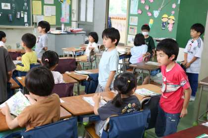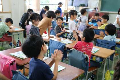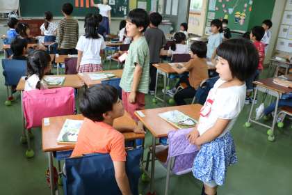 教科書の文章を何度か読むと、すぐに覚えてしまう子どもたち。友達に聞いてもらうと、一生懸命聞いて、大きな拍手をしてくれます。温かい雰囲気の学級です。
