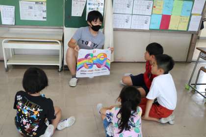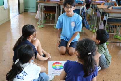 そして全員の自己紹介です。普段教室では元気な1年生も・・・もじもじ、少し恥ずかしそうです。