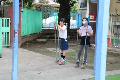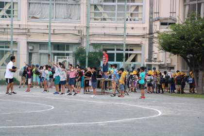 校庭では、金曜日の集会のために朝練習をしている集会委員の姿が。楽しみですね。