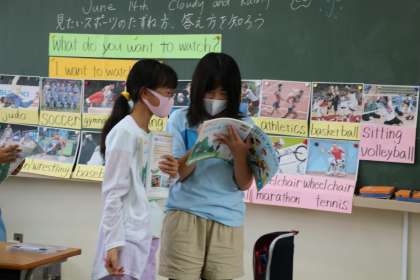 6年生外国語の様子です。ペアになり、見たいスポーツを聞いています。