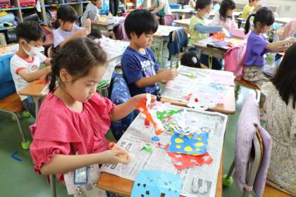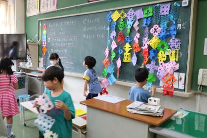 1年生図工の様子です。七夕飾りがたくさんできました!