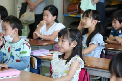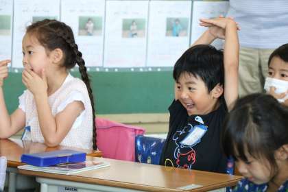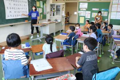 1年生国語「ひらがなでたのしもう」の様子です。全文字学習したひらがな表を見ながら口の形をしっかり意識して音読すると・・・