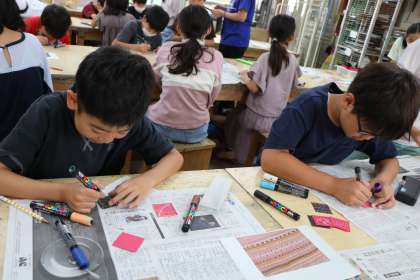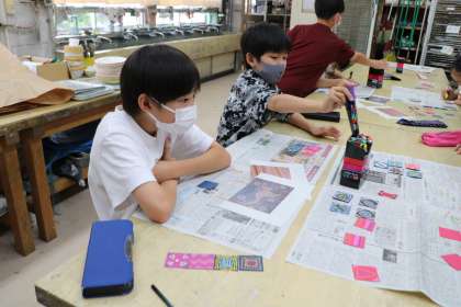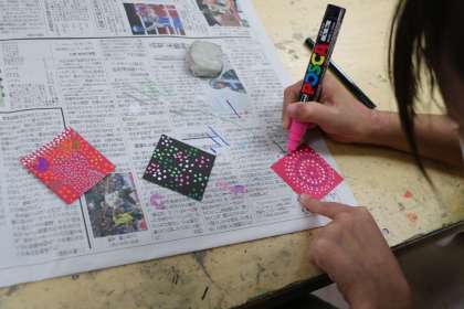 先生に自信作を写真に撮ってもらい、また次の作品に挑戦です。小さい紙なので、次から次へと色々なアイディアを試すことができます。
