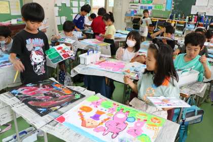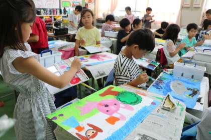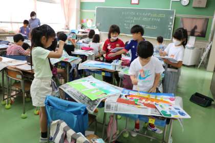 2年生図工「どうぶつさんといっしょ」の様子です。今日は絵具を使って仕上げです。伸び伸び自分の思いがたくさん詰まった作品を仕上げています。どの作品も家に飾っておきたいようなものばかりです。