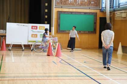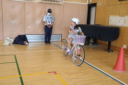 一人ひとり、実際に自転車に乗って体験し安全な乗り方を教えていただきました。