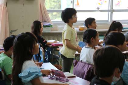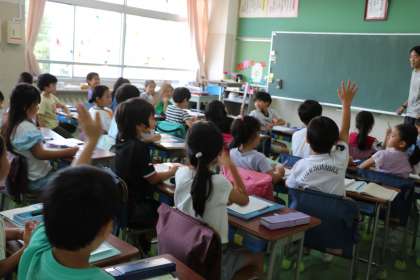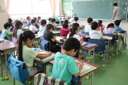 2年生日本語「一冊の本から」の様子です。お気に入りの本を一冊選び、本の楽しさが伝わるように読む学習です。先生の話の中で、「自分のお気に入りの本を・・・」と言われたらもう顔を輝かせて『あれにしよう!』『どれにしょう?』と考えている子どもたちです。
