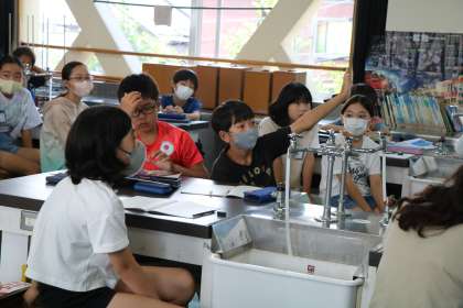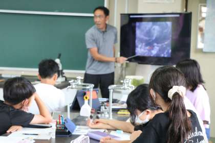 5年生理科の様子です。「天気の変化」の学習をしていました。「台風」の発生から消滅までの動画を見ながら「どうして?」「〜だから?」など疑問がたくさん出てきます。みんなで今までの学習をつなぎ合わせ考えながら、不思議に感じたことを解決しています。