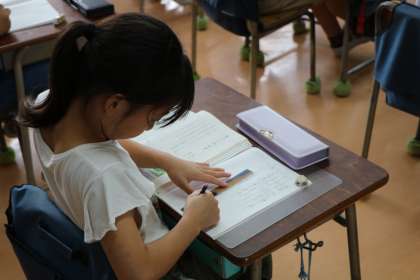 3年生の国語の授業の様子です。「まいごのかぎ」という物語を読んで、主人公の心境の変化について読み取っていました。場面を順番に振り返って、どの場面でどんなふうに気持ちが変わっていったかを丁寧に確認していました。