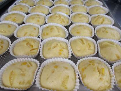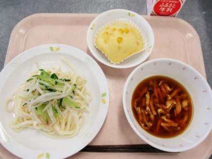 チーズ蒸しパンは、チーズとコーンが入った蒸しパンです。給食室で手作りしました。