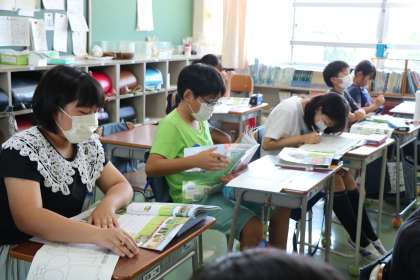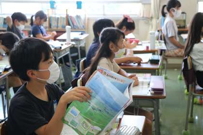 5年生社会。農業の学習をしています。5月に田植え体験をしてきた5年生です。次大夫堀公園の稲はきっと青々伸びていることでしょう。