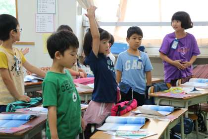 「いいねえ。みんな海について色々なイメージで歌えているね。では次は立って歌ってみましょう。」と言われ