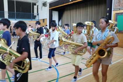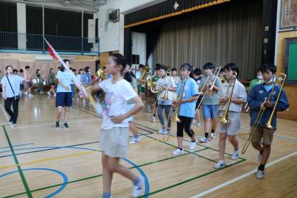 間隔のとり方、演奏の合図、、横の仲間と列を揃える・・・・演奏しながら考えることがたくさんです。われらがリーダー6年生!がんばっています!!