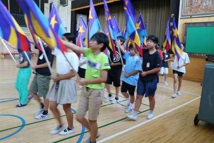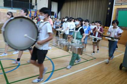曲と曲の間はドラムマーチなので、休める管楽器、鍵盤みんなに感謝されながら、打楽器は常に演奏です。フラッグもとってもかっこいいです。